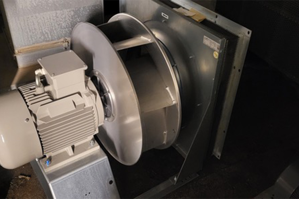 L’intervention a consisté à remplacer l’ensemble moteur + courroie par un moteur-turbine monobloc de nouvelle génération à haut rendement.
